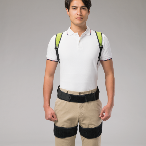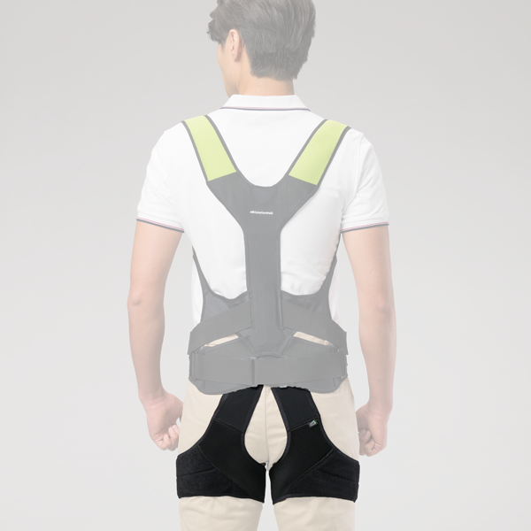 下肢パーツを追加することで、しゃがんだ時のズレを防止するのに加え、臀筋をサポートするので立ち上がり動作をスムーズにします。(下肢パーツは別売りです)
