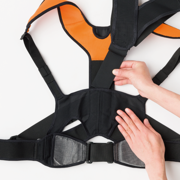 肩ベルトの引っ張り具合でサポート力の調整も可能です。