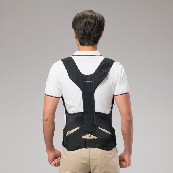 伸縮ゴムの張力によって、中腰姿勢での腰背部への負担を軽減します。