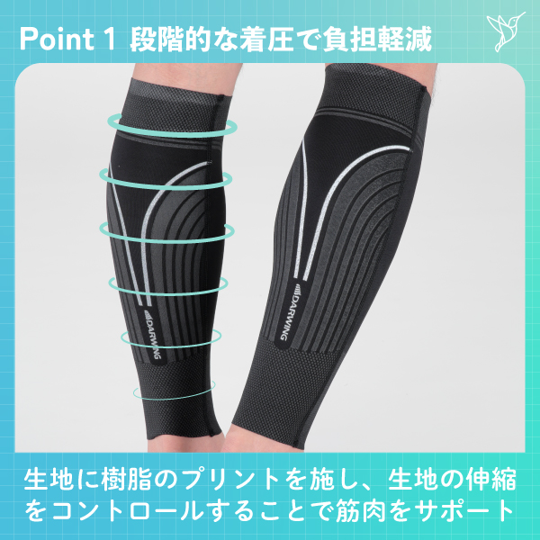 段階的着圧とテーピングラインのふくらはぎサポーター