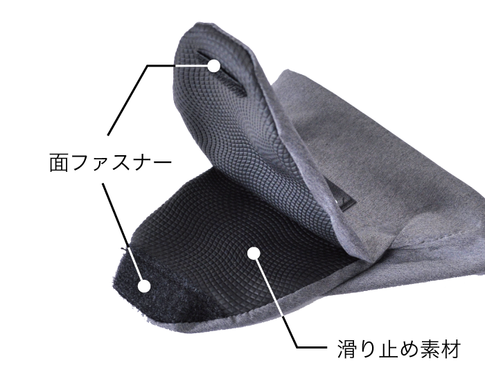 指先部分には面ファスナーが付いているので使わない時は閉じておくこともできます。