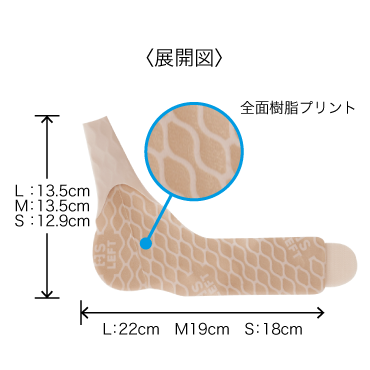 ・肌面全面に樹脂プリントを施すことで、ズレにくく、フィット性が高い
