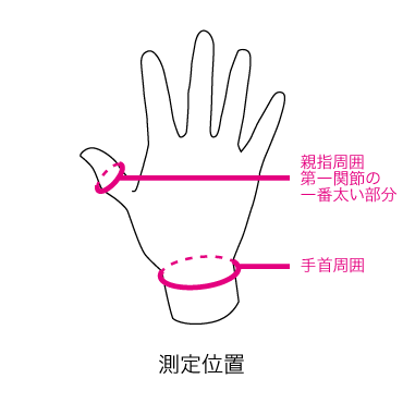 サイズ 親指周囲 手首周囲 L 6~7.5cm 17~20cm M 5.5~7cm 15~18cm S 5~6cm 13~16cm