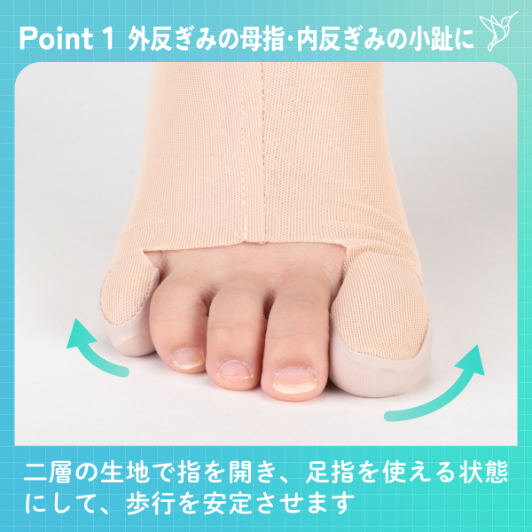 薄手の二層生地で親指と小指、足底バランスをサポート