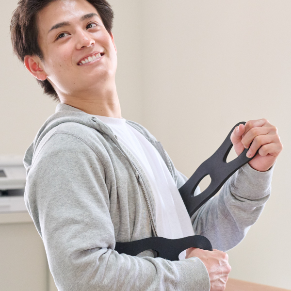 1.バンドを背中に沿わせ、脇を締めます。