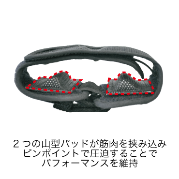 ・両脇から挟み込む2つの山型パッドがピンポイントで圧迫