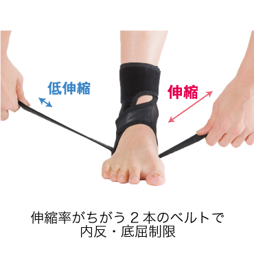 ・伸縮率が違う2本のベルトで簡単にテーピング法のフィギュアエイトを再現可能
