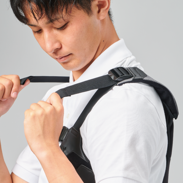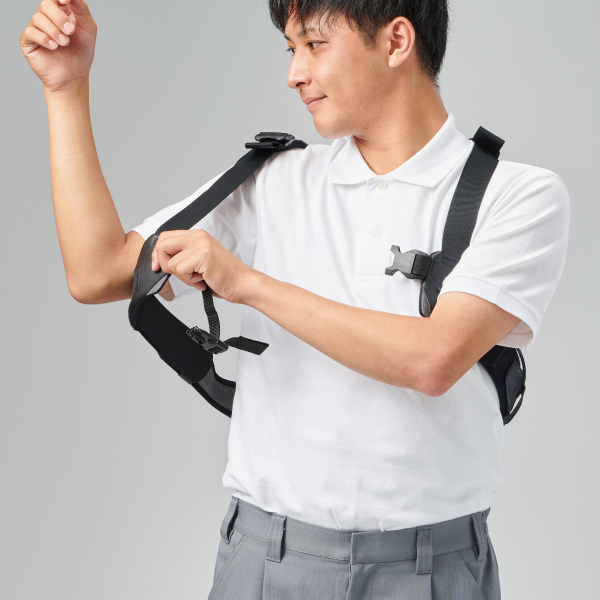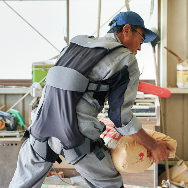 衣服のようなアシストスーツで中腰姿勢のキープ+持ち上げをラクに