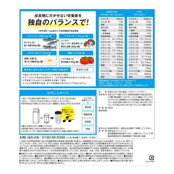 ・タンパク質 7,400mg、12種のビタミンなど成長期に欠かせない栄養素を 独自のバランスで配合