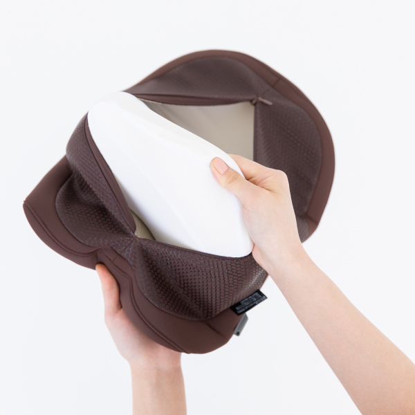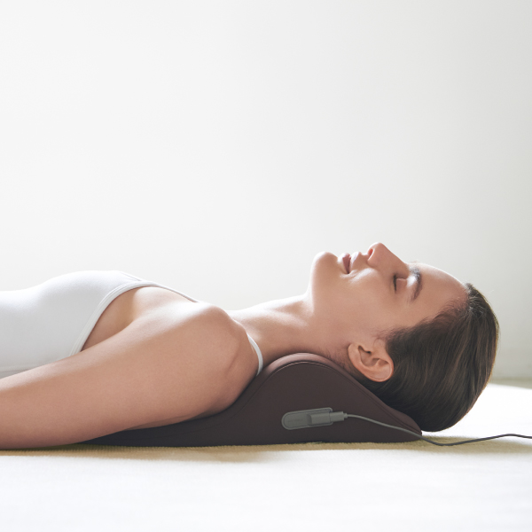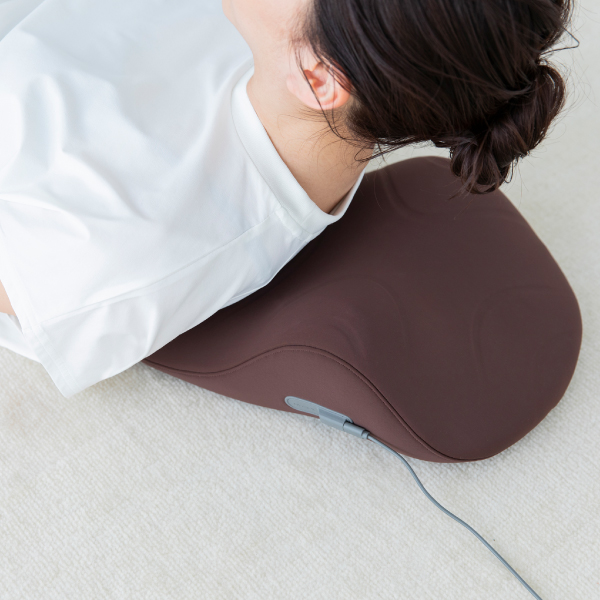 首・肩を効率的に休ませる。たどり着いたのはこの曲線美。独自に開発した流線型の形状が、首・肩にフィット。首から肩のカーブに優しく沿うよう設計された独自の流線形状と、首元を自然に支え続ける内部構造。じんわりと温めながら、頭の重みで気持ちよく働きかけます。
