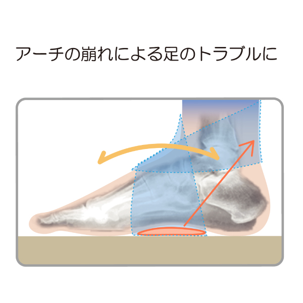 ・アーチパッドと固定バンドを組み合わせることでアーチのサポート機能を高めます。