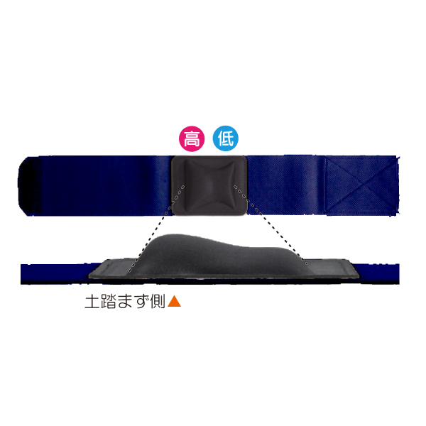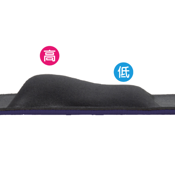 ・パッドの低い方が外側への動揺を軽減し、歩行を補助します。