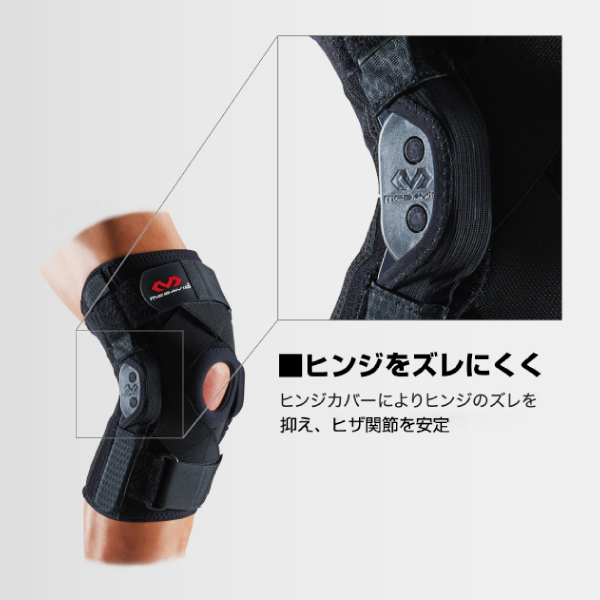 ヒンジカバーによりヒンジのズレを抑え、ヒザ関節の安定性を高める