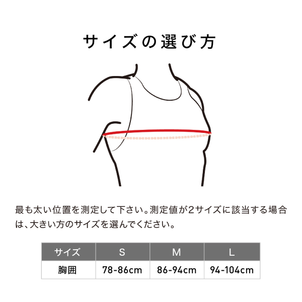 サイズ 胸囲 L 94~104cm M 86~94cm S 78~86cm