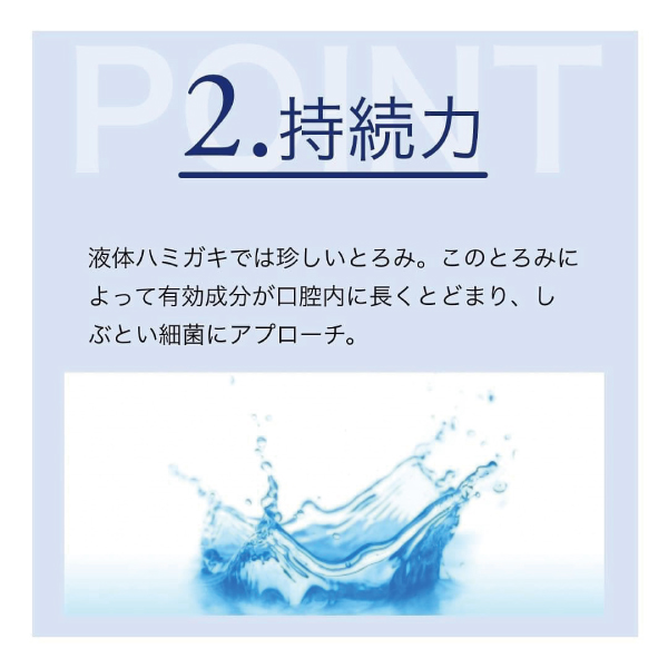 ・とろみによる殺菌時間キープと保湿効果で、菌の殺菌と増殖の両方を抑え、お口の健康をしっかりとサポート