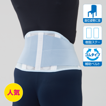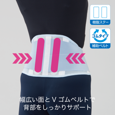 ・幅広いVゴムベルトで腰全体をサポート