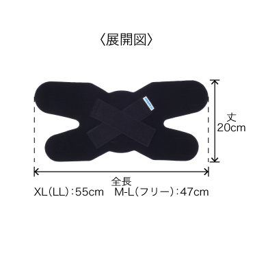 サイズ 膝上10cm周囲 全長 丈 XL 38~60cm 55cm 20cm M-L 30~55cm 47cm