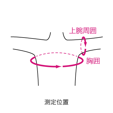 ※採寸時は上腕周囲をご確認いただき、次に適切な胸囲のサイズをお選びください