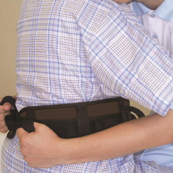 ・キャリーベルトは利用者の腰周りに優しくフィットし、利用者側にもち手を確保することで介護者、利用者の双方にやさしい介助をご提案