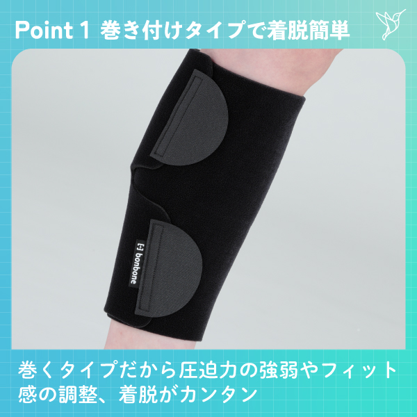 フィット感や圧迫力の調整が可能な巻くタイプ