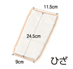 種類 サイズ 入数 ひじ 二の腕周囲 20~28cm 1枚 ひざ 膝上10cm周囲 30~38cm ふくらはぎ ふくらはぎの最も太い位置 25~32cm もも 大腿周囲 34~45cm ひざロング 膝上10cm周囲 30~38cm